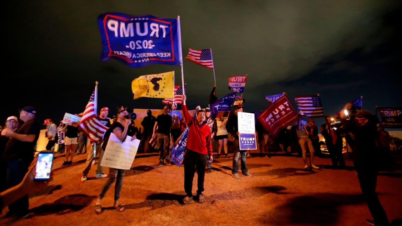 Un numeroso grupo de seguidores del actual mandatario hacen parte de una manifestación en la que afirman que hubo manipulación de las boletas electorales y rechazan una presunta falta de observadores en los procesos de revisión de sufragios. Por su parte, las autoridades informaron que el proceso de conteo de votos podría ir hasta el 12 de noviembre y que el 16 de ese mismo mes enviarían los resultados al secretario de Estado.