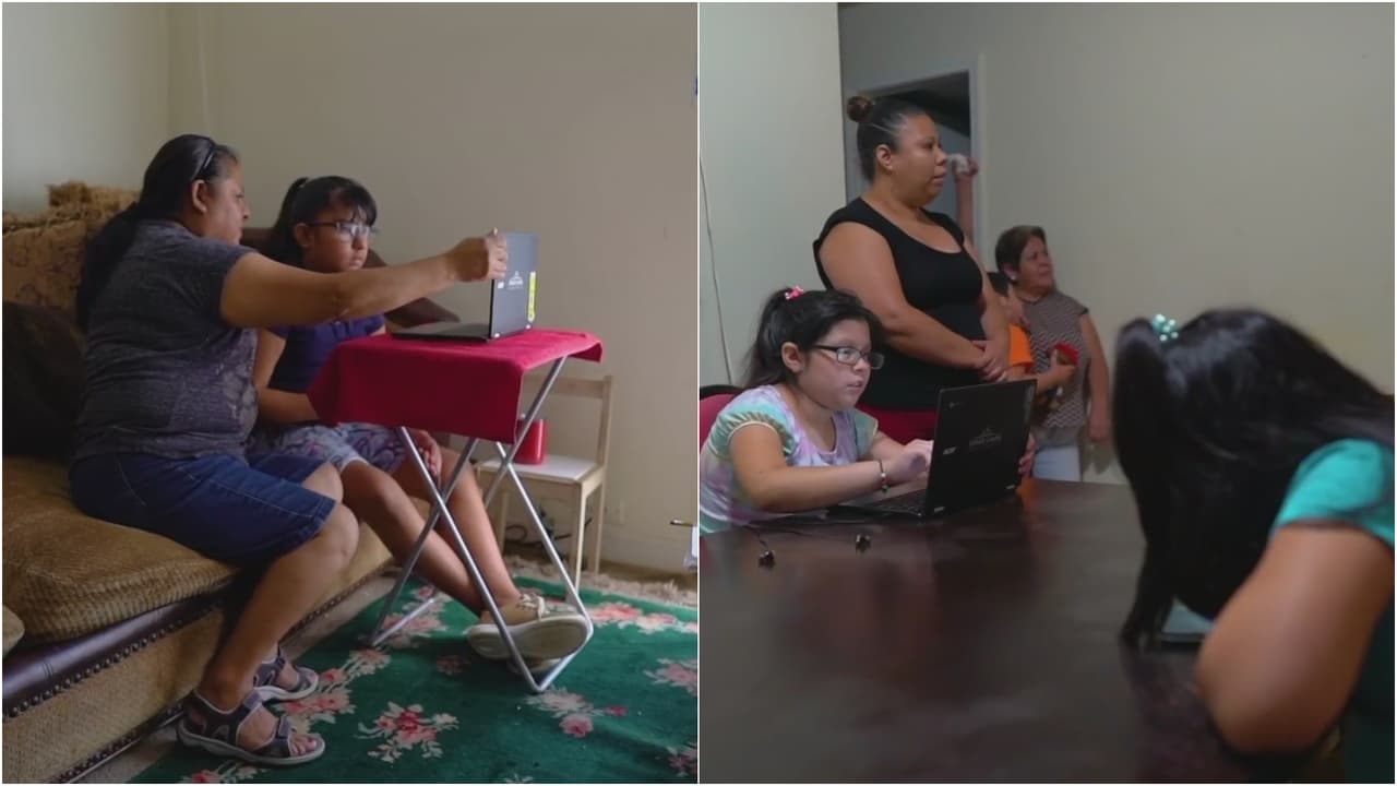 Muchos padres inmigrantes aseguran que no saben usar las computadoras para poder ayudar a sus hijos en las clases en línea. "Hay algunos que no saben leer o escribir, o no saben de tecnología", precisa María Consuelo Pérez, quien colabora en una organización ayudando a estas familias. "Las computadoras están, pero cuando no tienes internet es como un teléfono sin línea", dijo Ana Mateo, madre de siete pequeños.