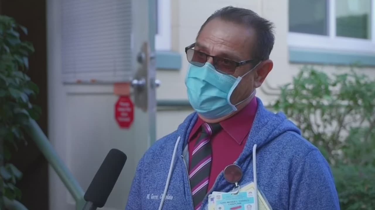 Luis Manuel Torres es el capellán del Centro Médico del Condado de Los Ángeles y dice que muchas veces él es el último contacto humano que puede tener un enfermo con coronavirus. "Si me escuchas mueve la mano, y ellos la mueven", dice el religioso indicando que, aún intubados, los pacientes lo oyen.