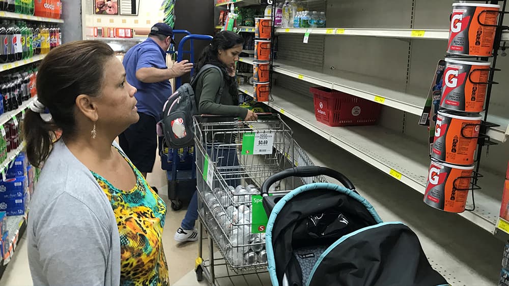 Miles de residentes buscan conseguir lo necesario para soportar el paso del ciclón. Sin embargo, en algunos establecimientos ya comienza a haber escasez ante la alta demanda de agua y alimentos no perecederos.