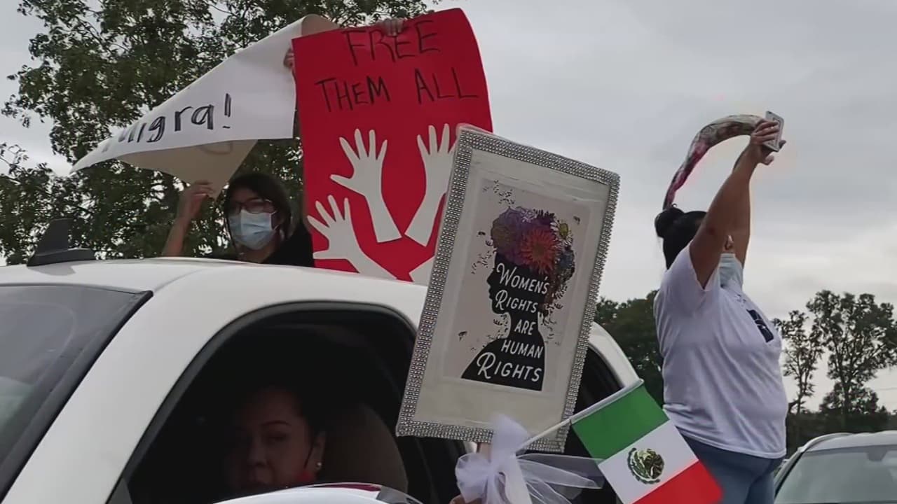 Decenas de personas llegaron en caravana hasta el Centro de Detención del Condado de Irwin para manifestarse en contra del Servicio de Control de Inmigración y Aduanas (ICE) tras la denuncia de una enfermera que trabajó allí y señaló que un médico les realizó estos procedimientos a más de 16 inmigrantes.