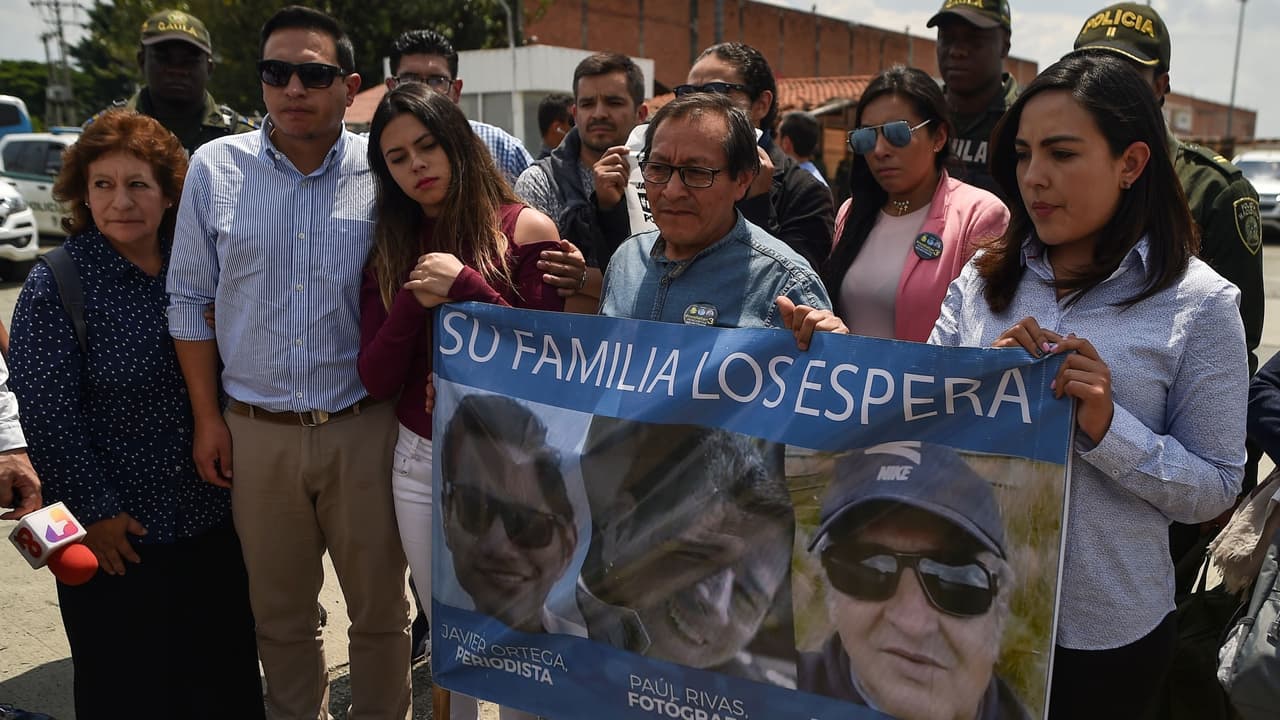 Los presuntos cuerpos de los tres comunicadores ecuatorianos llegaron a la ciudad de Cali, Colombia, para su identificación. Los familiares de Javier Ortega, Paúl Rivas y Efraín Segarra se reunieron este sábado a las afueras con pancartas a la espera que Medicina Legal les confirme la identidad de los cuerpos. El grupo de periodistas fue secuestrado y posteriormente asesinado por disidencias de las FARC.
