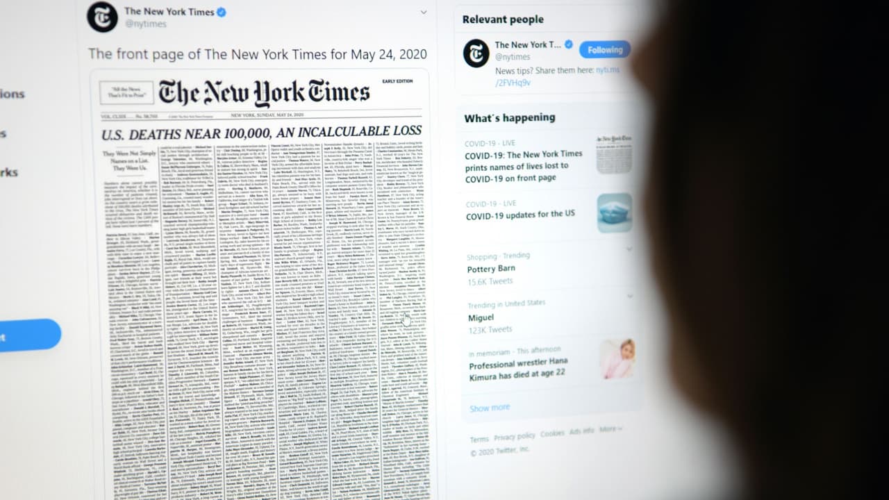 The New York Times y una histórica portada: publican el nombre de más de 1,000 víctimas del covid-19 en EEUU