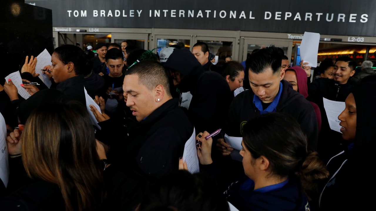 Trabajadores de la TSA en el LAX protestan por el cierre del gobierno