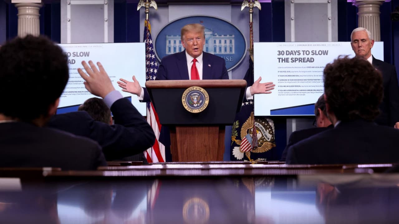El presidente alertó que las semanas que vienen serán “muy duras” y, en un tono menos combativo, resaltó la labor de la prensa, pero en especial la del personal médico en todo el país. Ante las críticas de los demócratas por su gestión frente a la emergencia, principalmente las hechas por Joe Biden, afirmó que si él no hubiera hecho nada ya habrían muerto millones de personas.