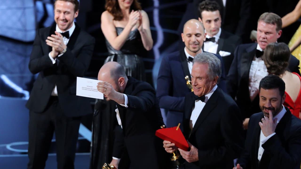 El actor Warren Beatty fue el encargado de abrir el sobre del Oscar a la 'Mejor Película' y lo que pasó después ya es historia. Según contó la organización, la confusión se produjo porque existen dos sobres iguales de cada galardón. Al parecer, Beatty recibió el sobre del Oscar a la 'Mejor Actriz'.