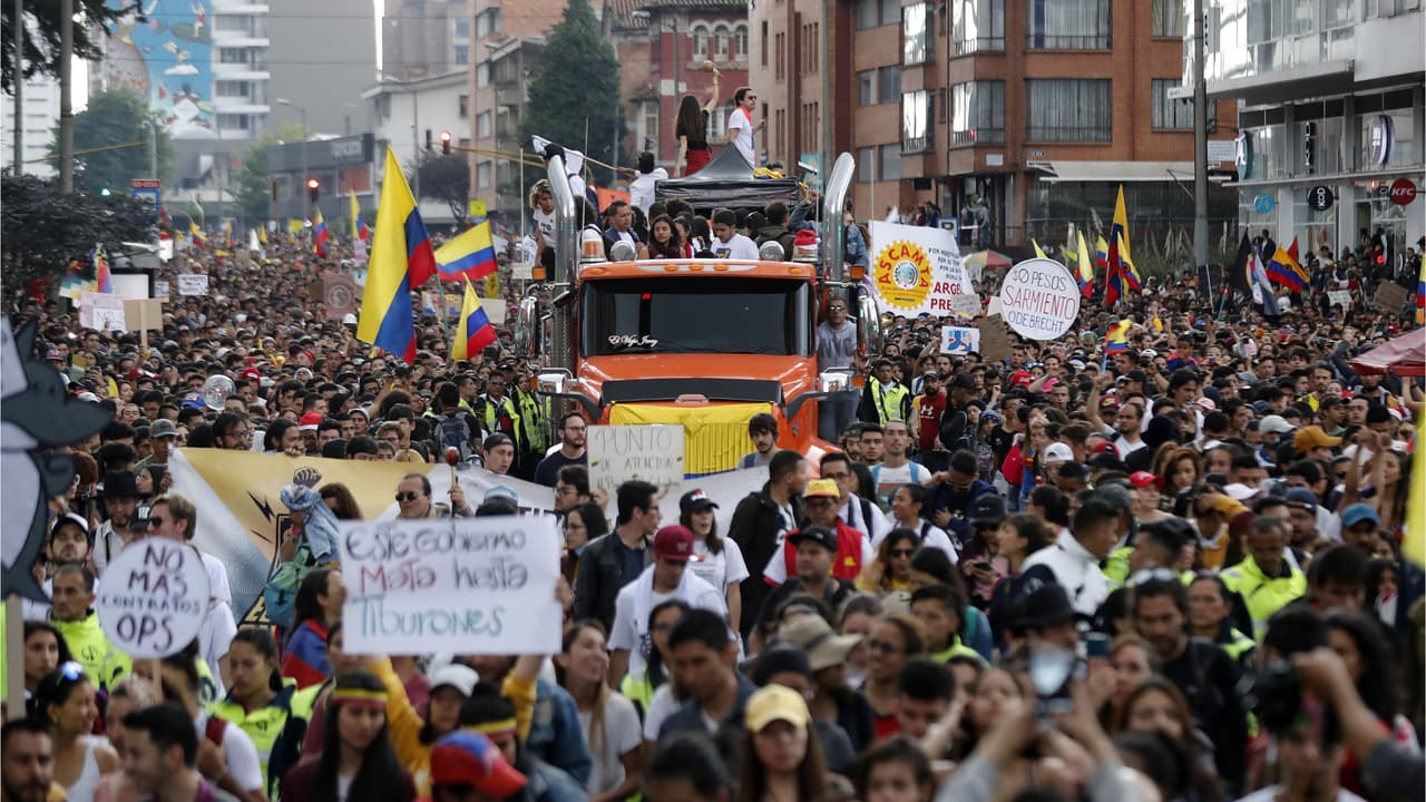 Varios cantantes y agrupaciones colombianas unieron sus voces este domingo en un concierto móvil en respaldo a las protestas contra el gobierno del presidente Iván Duque. La multitudinaria movilización, que se tomó las calles de Bogotá, transcurrió pacíficamente.
