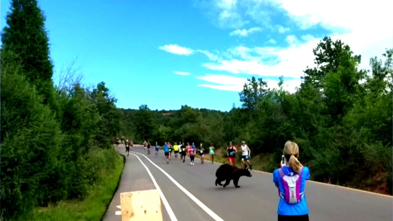 Un oso aparece en una competencia de atletismo y pasa cerca de los participantes en Colorado