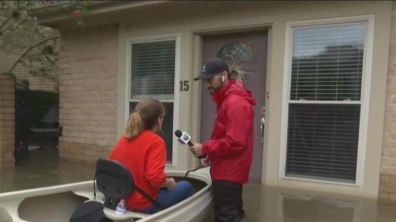 Enrique Acevedo acompañó a esta hispana a abrir la puerta de su casa, de la que tuvo que marchar por las inundaciones en Houston.