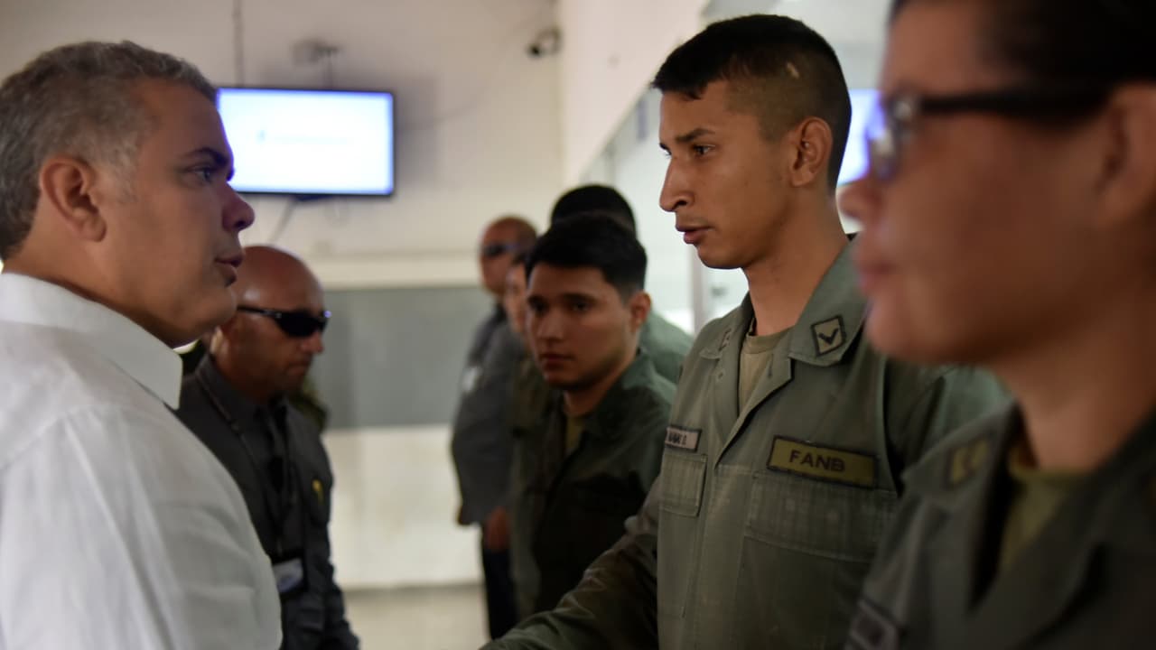 El gobierno de Colombia informó que más de 120 miembros de las fuerzas armadas de Venezuela le han dado la espalda a Nicolás Maduro. El presidente Iván Duque se reunió con varios de ellos y elogió su valentía.