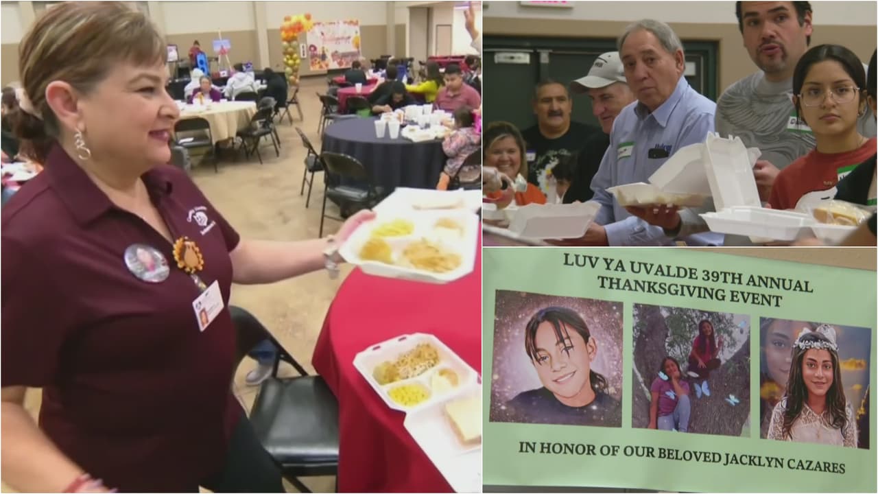 Cuando se cumplen seis meses de la masacre en la Escuela Primaria Robb en Uvalde, Texas, la comunidad se unió para servir más de 300 platos de comida caliente para celebrar 'Thanksgiving'. Algunos de los niños que fueron asesinados en el tiroteo eran asistentes a este evento, por lo que sus padres decidieron honrar su memoria haciendo presencia en el lugar.