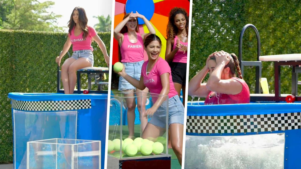 Esta semana, las siete finalistas tuvieron una divertida actividad en la Mansión que les ayudó a relajarse y sacar todo el estrés acumulado. Cada una se ubicó en un columpio ubicado encima de un enorme de balde con agua y sus compañeras tenían que pasar y decirle alguna verdad, al mismo tiempo que intentaban tirarla aventando una pelota.