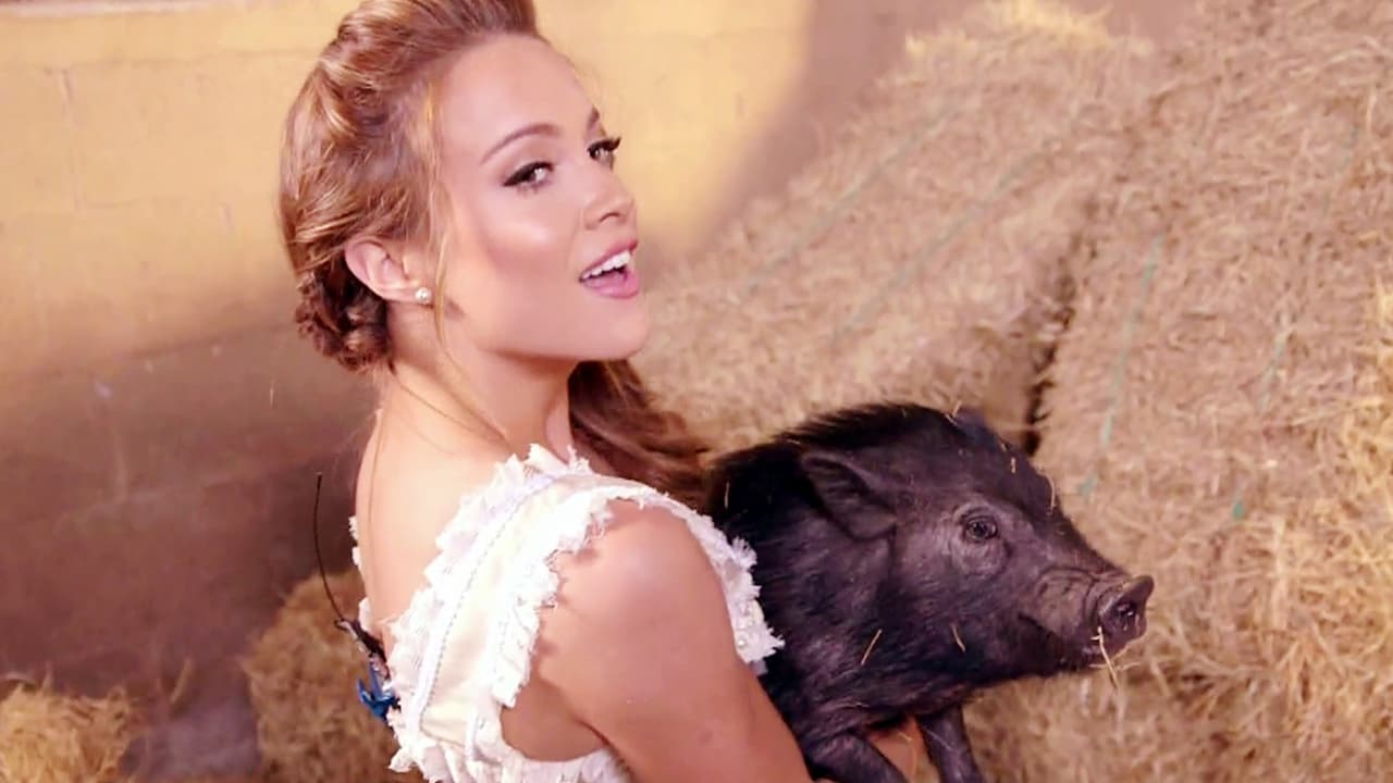 Las chicas no la tuvieron fácil en su sesión de fotos, pues un inquieto cochinito les impedía tener una buena toma.