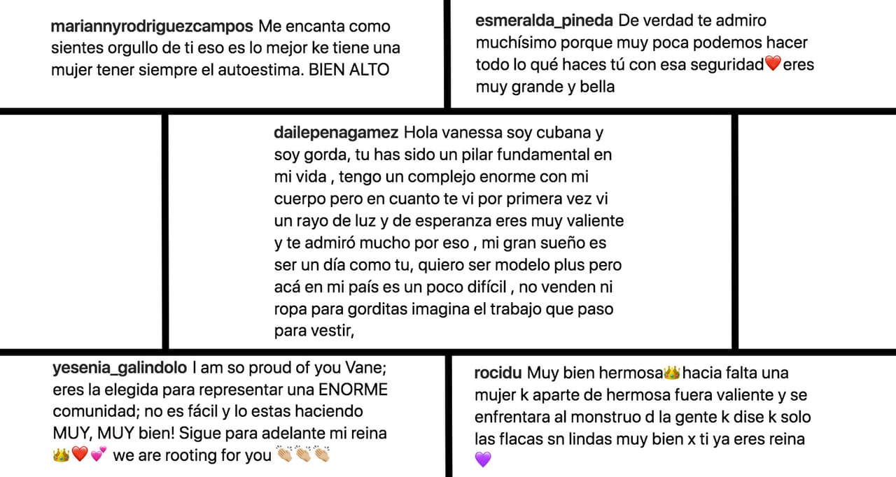 Vanessa confesó que durante mucho tiempo no se quiso a sí misma, que se dedicaba a maltratarse y a regañarse. Ahora su objetivo es que la gente se sienta bien con su cuerpo y espera ser un ejemplo para ellos.
