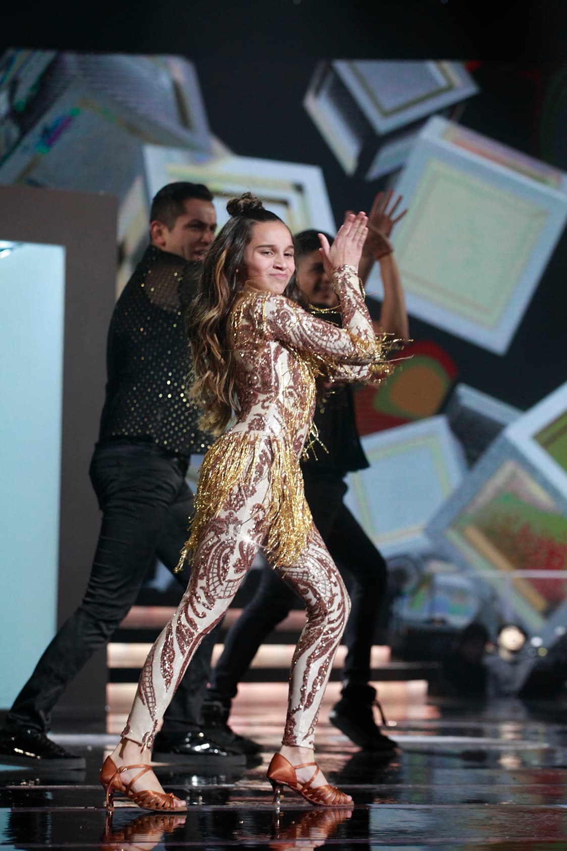Sara, la bailarina del escuadrón de Giovani, se apoderó del escenario y nos regresó hasta el año 1999, cuando la diva del Bronx popularizó el tema que sonó este domingo en la pista del reality show infantil.
