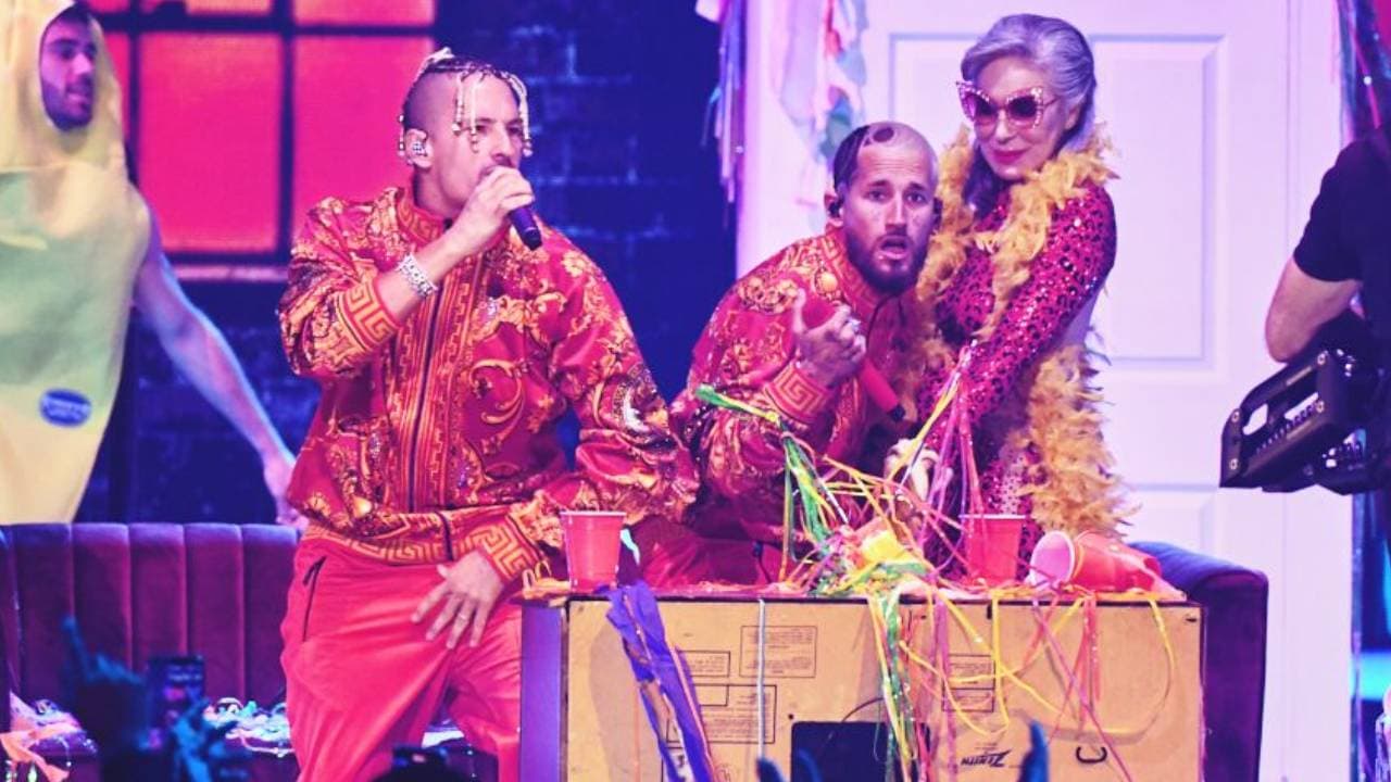 Con un espectacular ‘performance’ lleno de botargas, Mau y Ricky se adueñan del escenario de Premio Lo Nuestro 2023 para hacer sonar su canción ‘Miami’.
