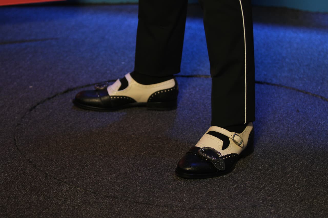 El talentoso trompetista y músico Spencer Ludwig lució unos pantalones y chaqueta negra que remató con unos botines plateados muy de temporada y su ya clásico sombrero.