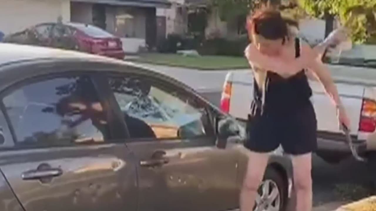 A martillazos, mujer golpea el auto de un hispano y le pide a su vecina que se "vaya a México"