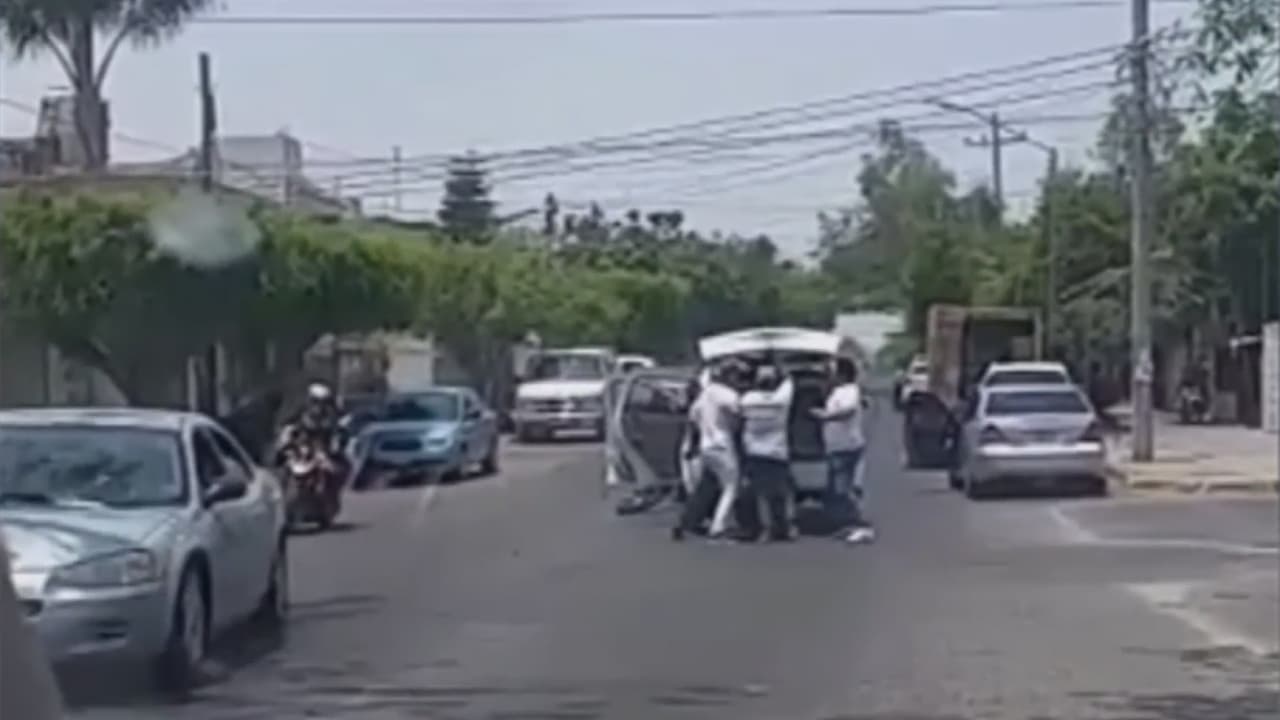 A plena luz del día, hombres golpean y patean a un joven para meterlo en el baúl de un auto en México