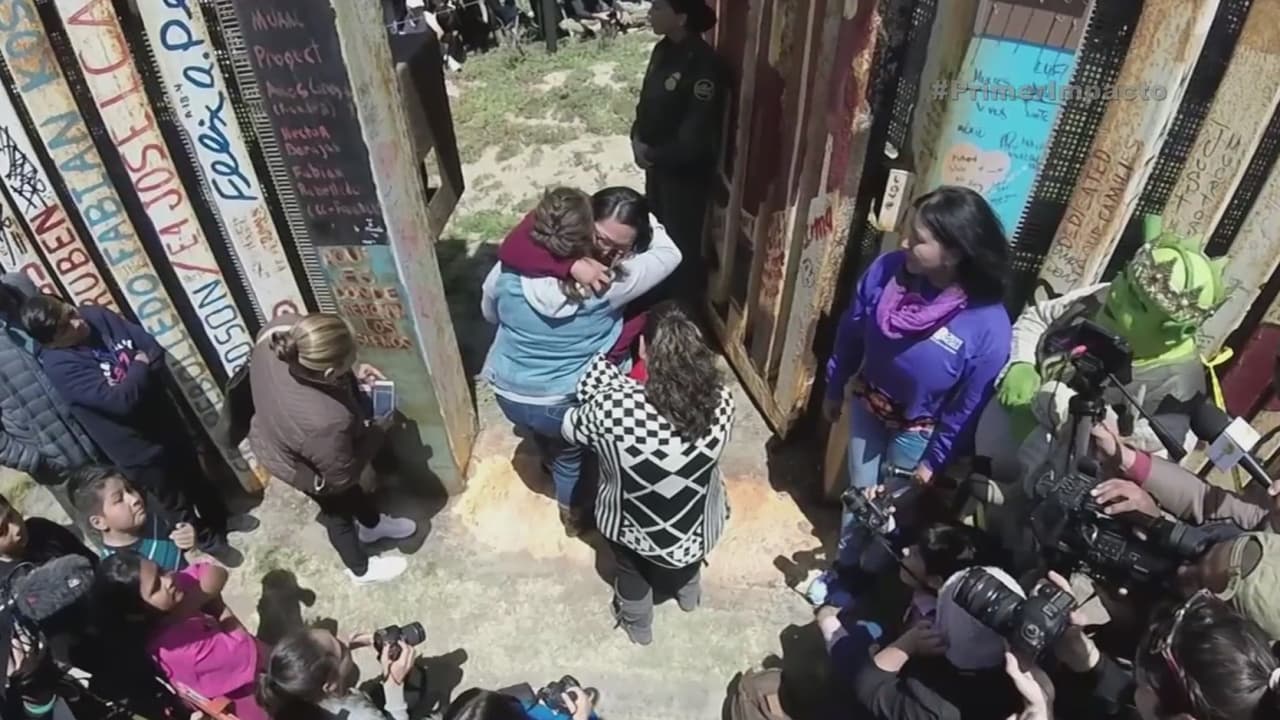 Solo tres minutos se abrió la puerta de la cerca que divide a Estados Unidos y México, pero este tiempo bastó para que seis familias separadas se abrazaran entre lágrimas.