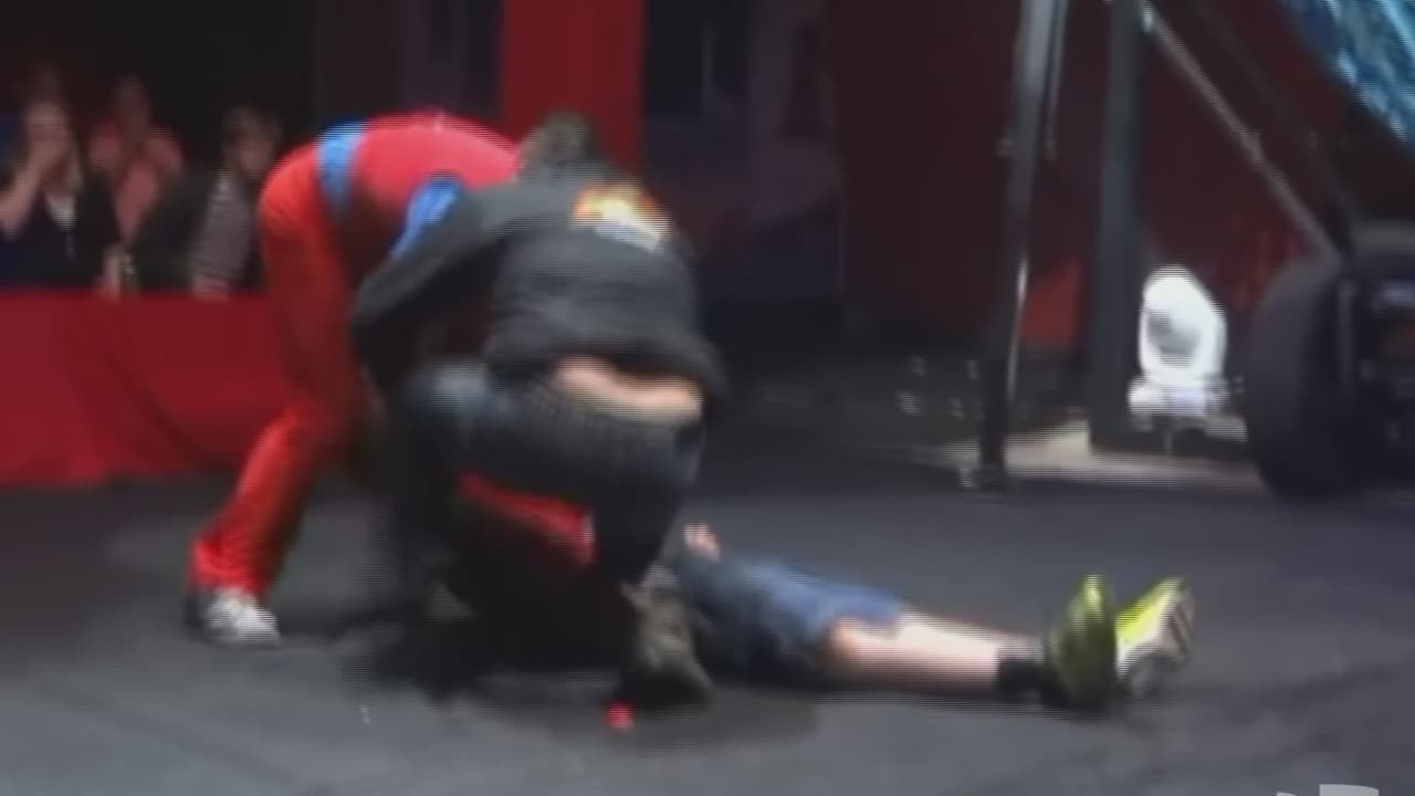 Un payaso acróbata intentó hacer una salto con un espectador, pero todo salió mal y el espectador quedó inconsciente y llevado al hospital.