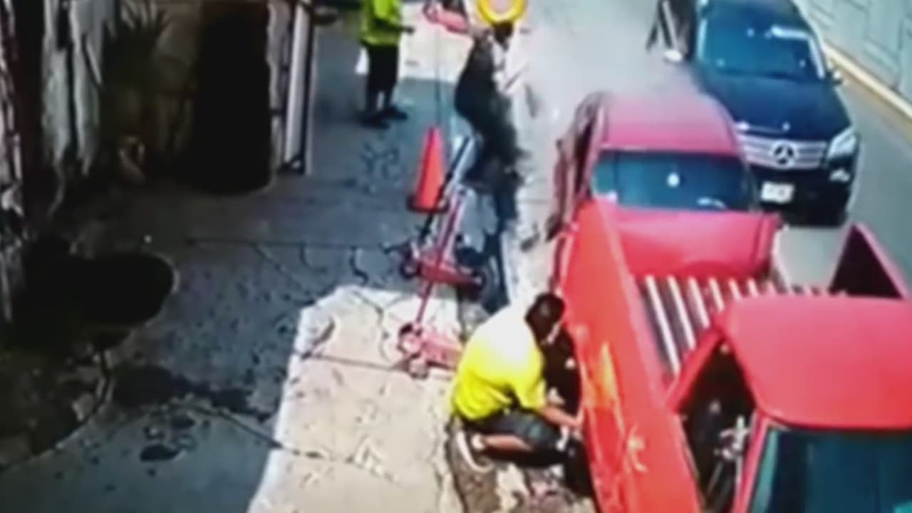 Arreglaba la llanta de su auto cuando casi fue atropellado por un auto fuera de control