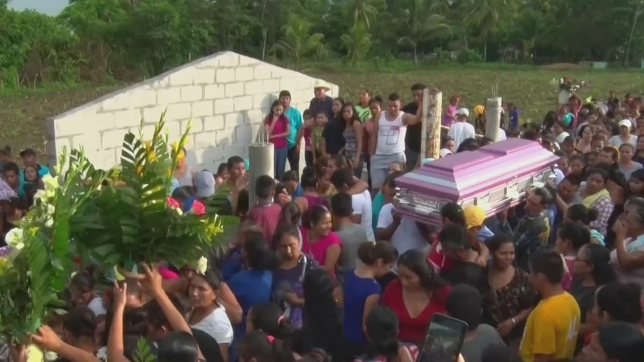 El crimen ocurrió en Nueva Concepción, Guatelama. Las víctimas identificadas como Ingrid de la Cruz de 32 años y su sobrina de 3 años fueron encontradas en un baño de sangre dentro de una vivienda. Otra niña resultó con una herida de bala en el rostro. Testigos aseguran que vieron al sospechoso en el último adiós de las víctimas y que después desapareció. "De la justicia divina nadie se escapa", declaró la madre de la menor que esta desconsolada.