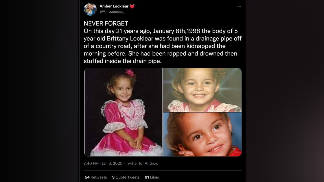 El asesinato sin resolver de la niña Brittany Locklear: 24 años sin respuestas ni arrestos