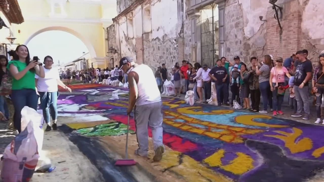 Así crearon la 'alfombra de la esperanza' para la procesión de la iglesia de la Merced en Guatemala