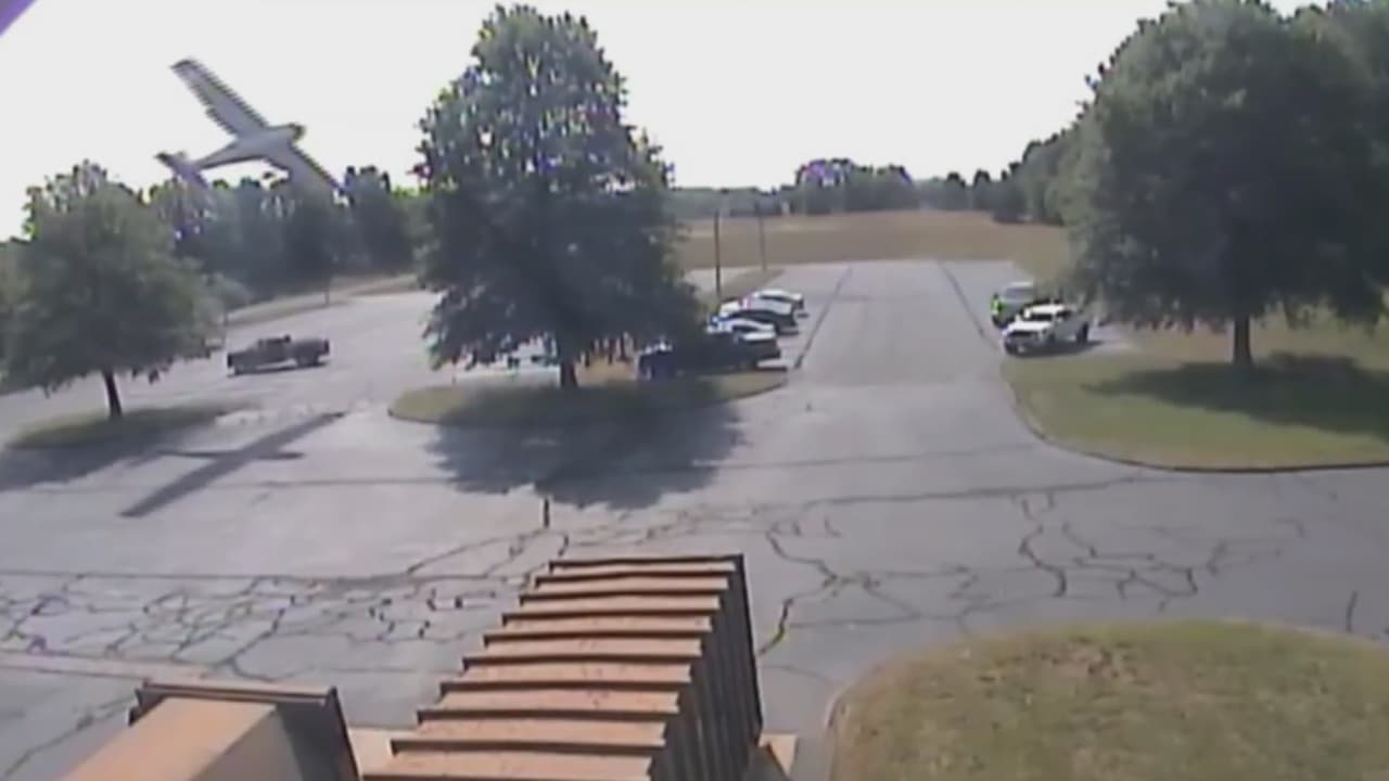 Una cámara captó el momento donde se ve a la aeronave empezar a descender con velocidad, chocar contra un árbol y caer sobre un estacionamiento.