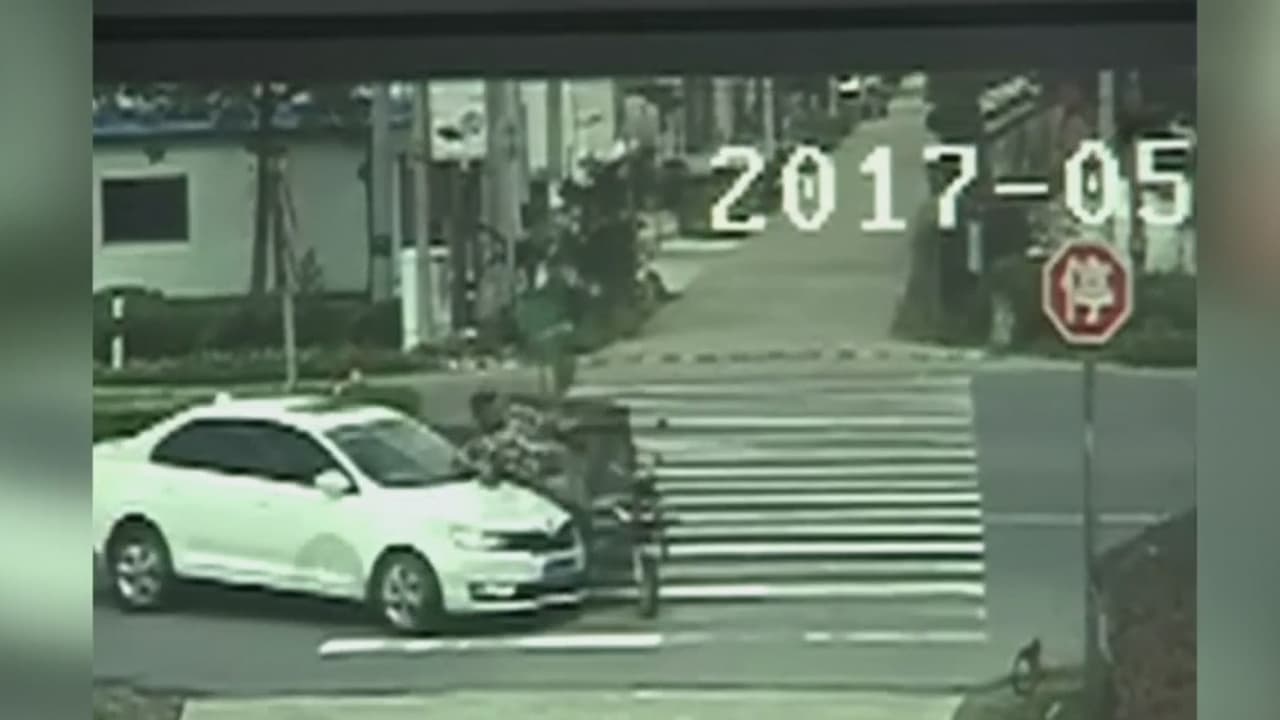 Atrapado bajo un auto, así quedó un anciano al ser atropellado cuando viajaba en bicicleta en China