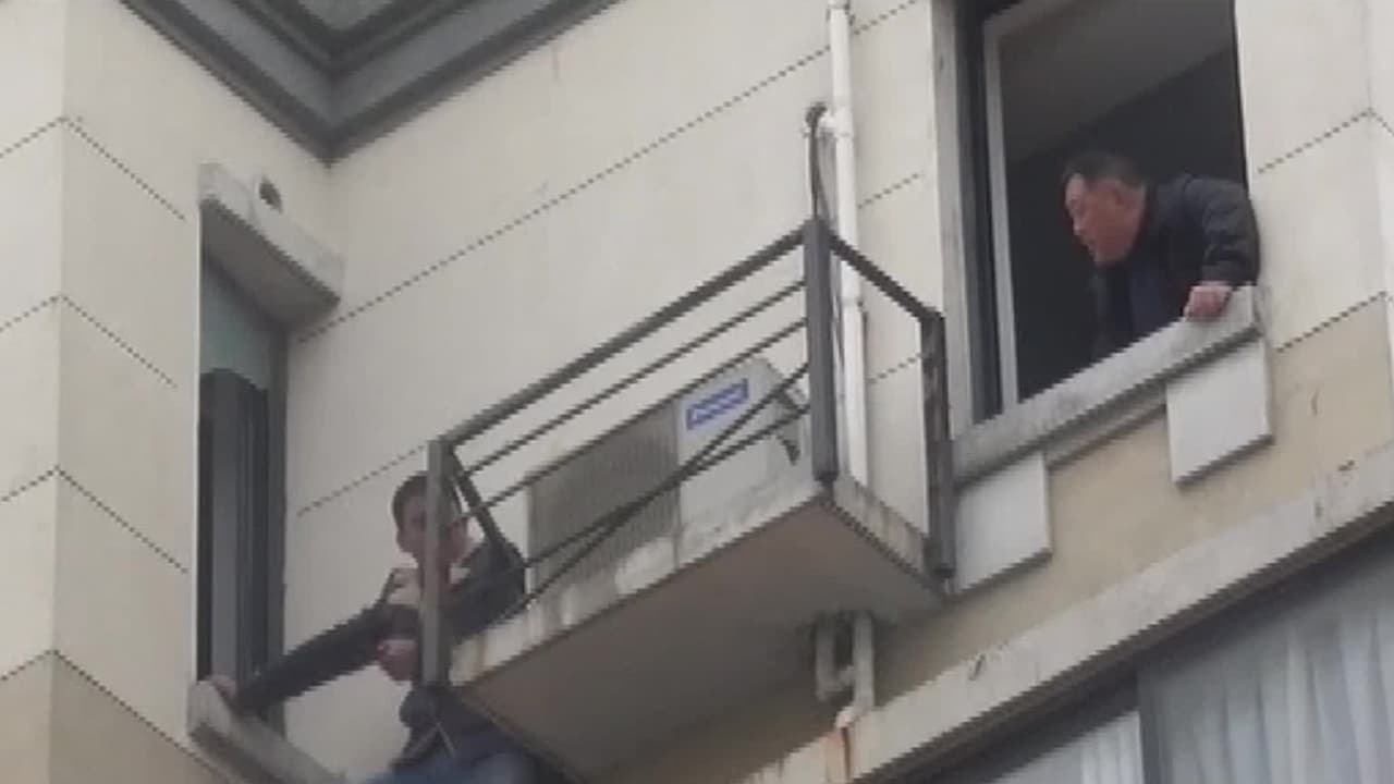 Atrapado y a punto de caer al vacío quedó un ladrón en China que trataba de escapar de la policía