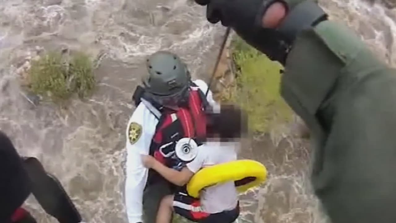 Atrapados en una corriente de agua, a este padre y su hijo les llegó la ayuda del cielo