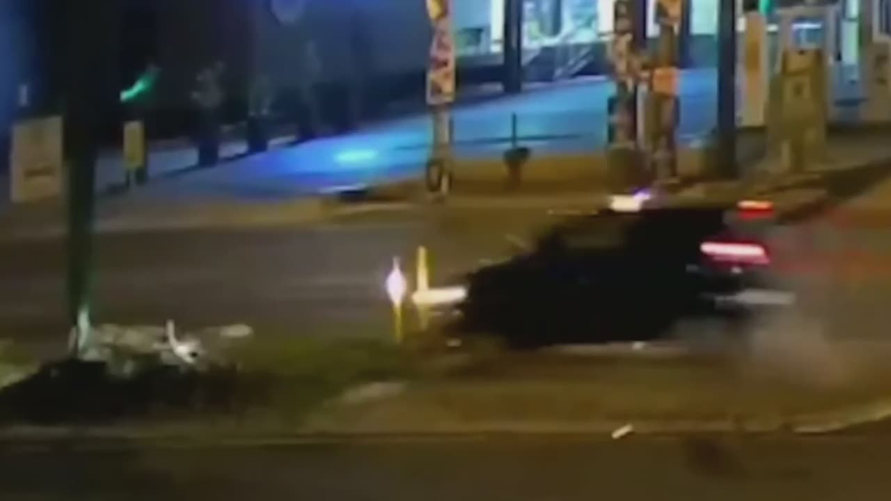 En el video se puede ver el vehículo que viaja a toda velocidad, derriba la estructura y da una voltereta hasta quedar ruedas arriba sobre el pavimento.
