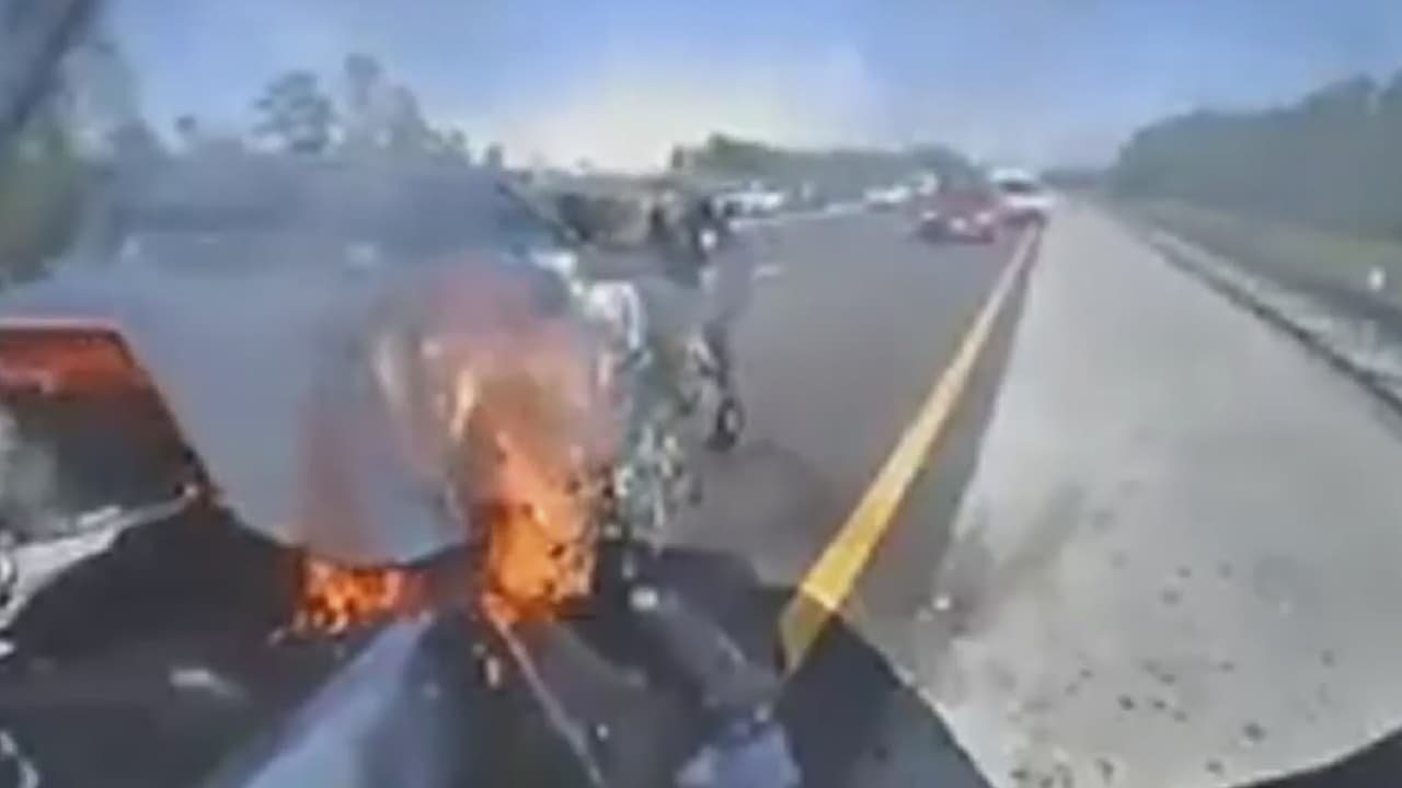 Auto se estrella contra una patrulla estacionada y termina en llamas