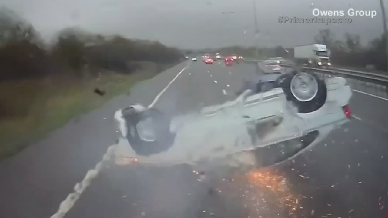 La cámara de seguridad de una camioneta grabó el aparatoso choque de un auto.