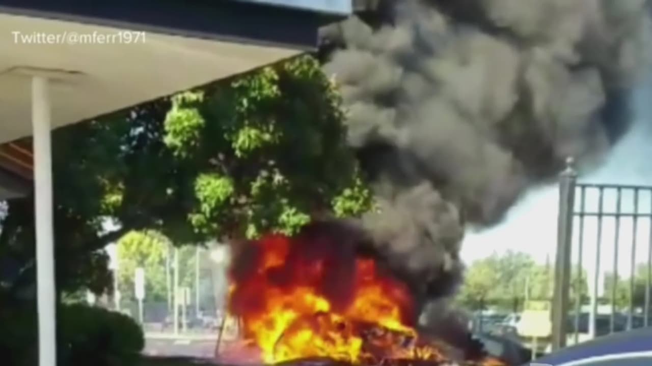 Avión cae en picada prendido en llamas en calle de Connecticut