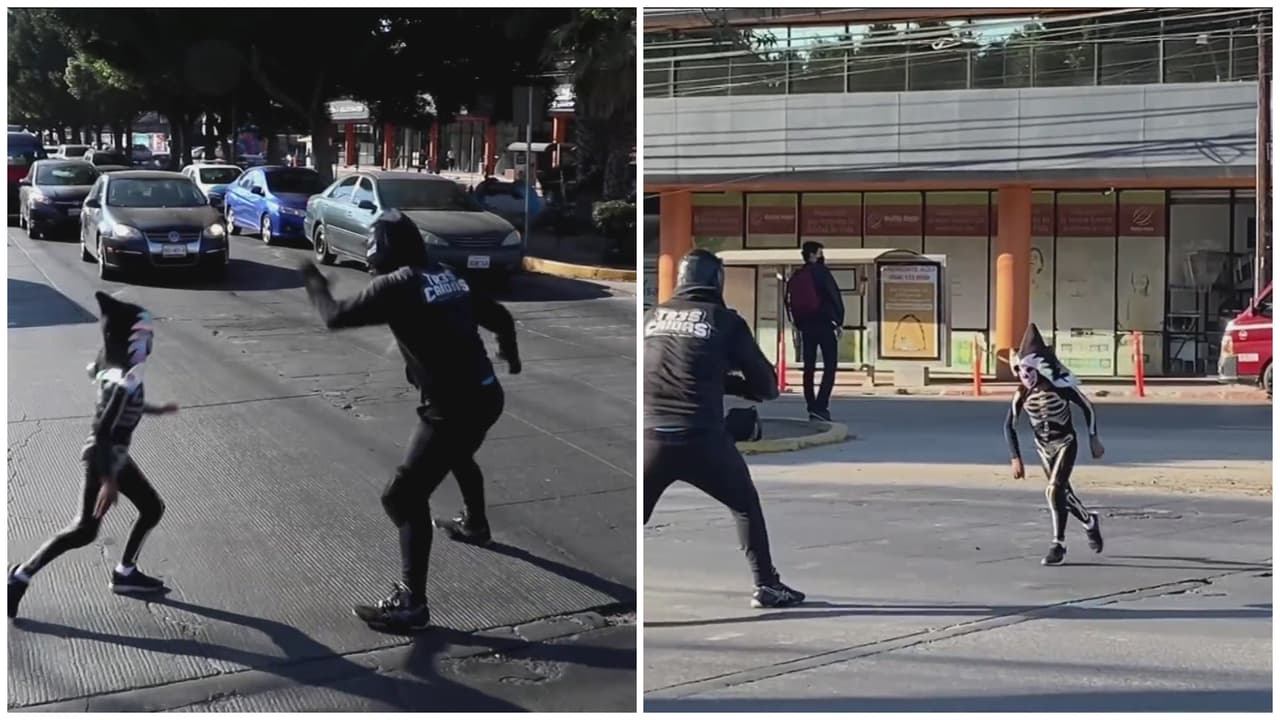 Un padre y sus hijos hacen todo un espectáculo de lucha libre en una esquina de la ciudad de Tijuana, México, para poder ganarse unos pesos y comprar comida. Su negocio de confección de máscaras de lucha libre quebró cuando comenzó la pandemia.