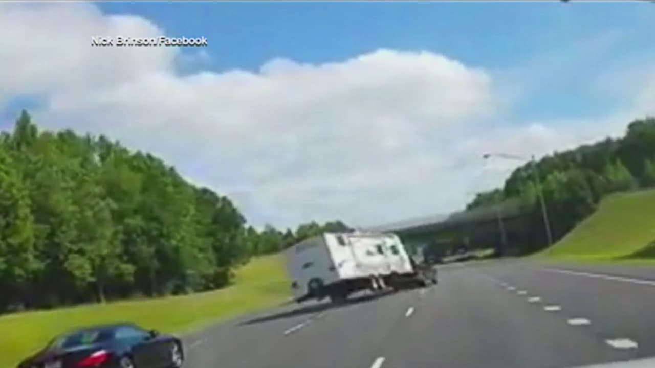 Balanceándose hasta volcar, así terminó un tráiler en una autopista de Nueva Jersey