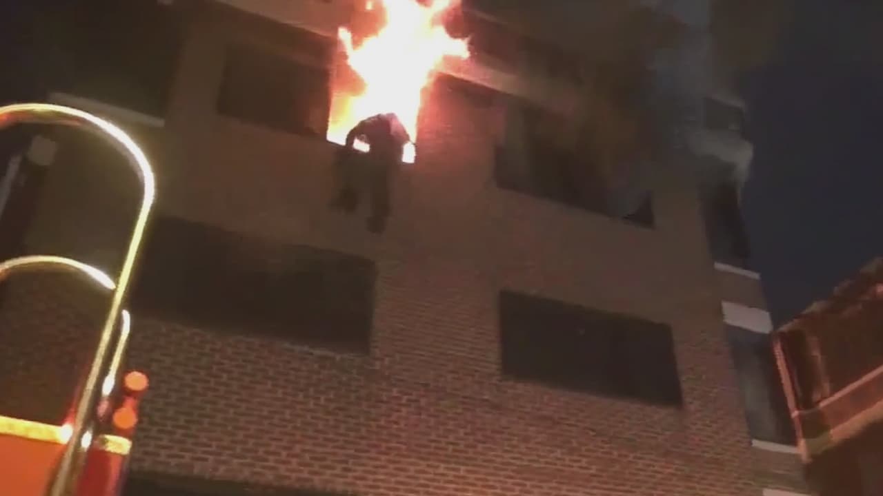 El agente salvó a los inquilinos del apartamento lanzándolos por la ventana por la que él mismo saltó. Al caer, se fracturó la cadera y ahora se recupera de las heridas.