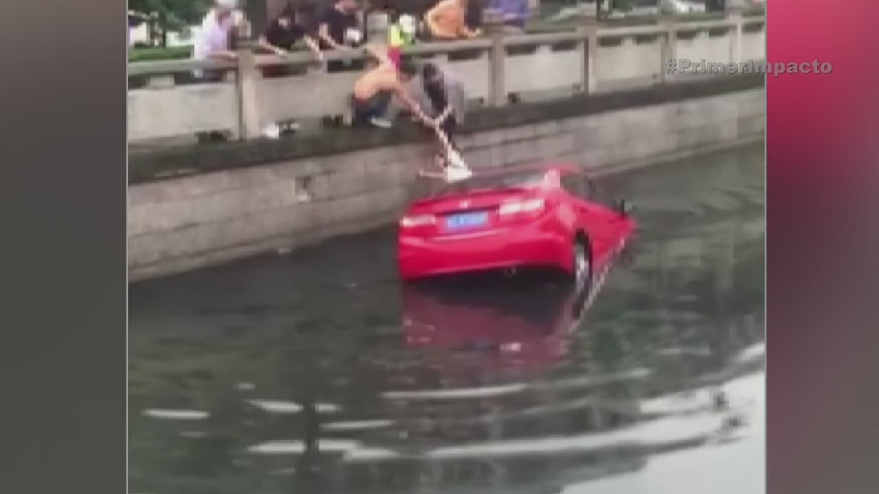 Buenos samaritanos rescatan a una mujer a punto de hundirse en su auto