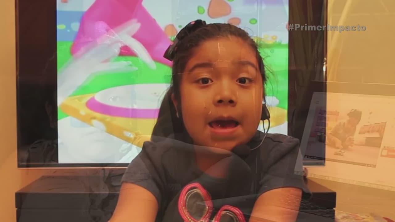 Con ayuda de su papá, Camila realiza videos educativos para niños en Perú.