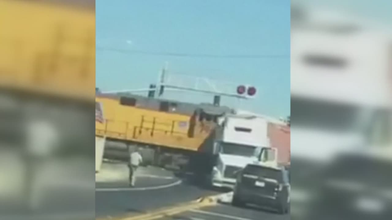 El video muestra cómo la locomotora embiste al vehículo y lo estremece. Afortunadamente no hubo heridos que lamentar.