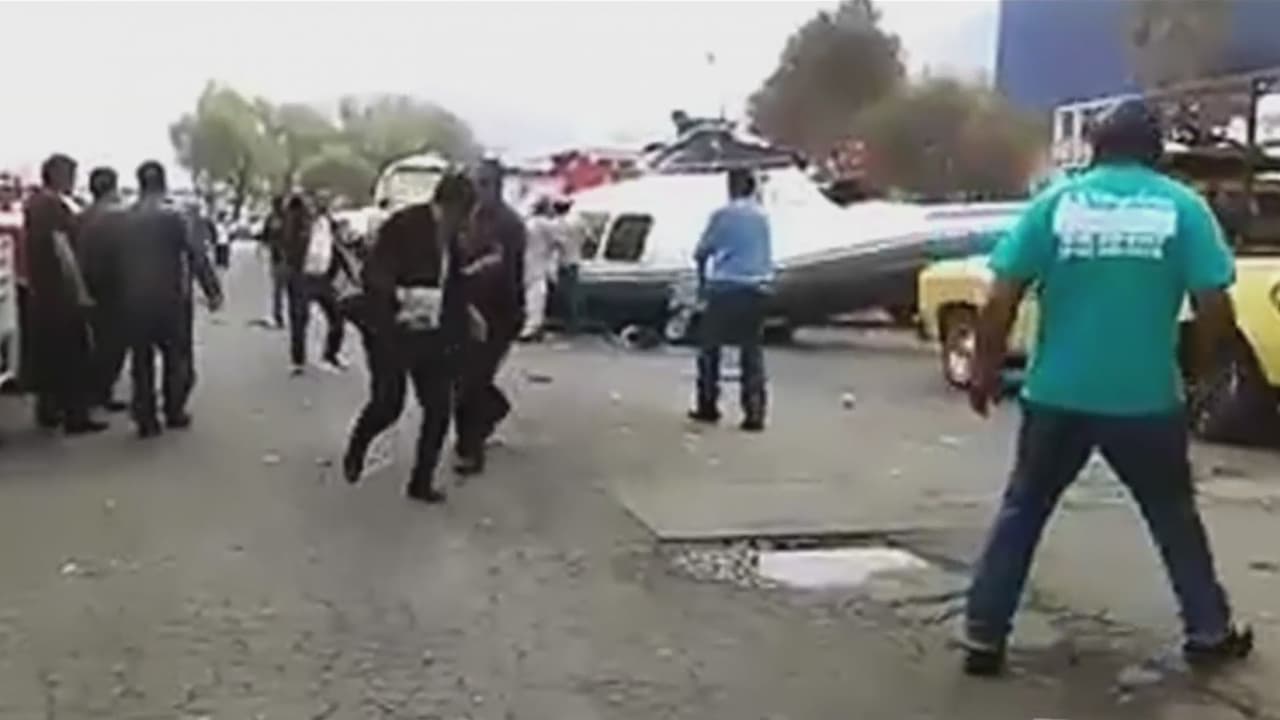 Captada en cámara quedó la impactante caída de un helicóptero en un almacén de gas en México