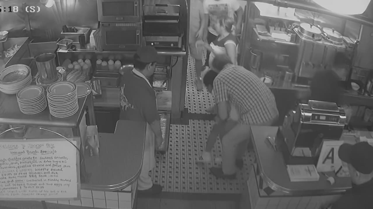 El momento en que el dueño de un restaurante intenta salvar una niña que está asfixiándose