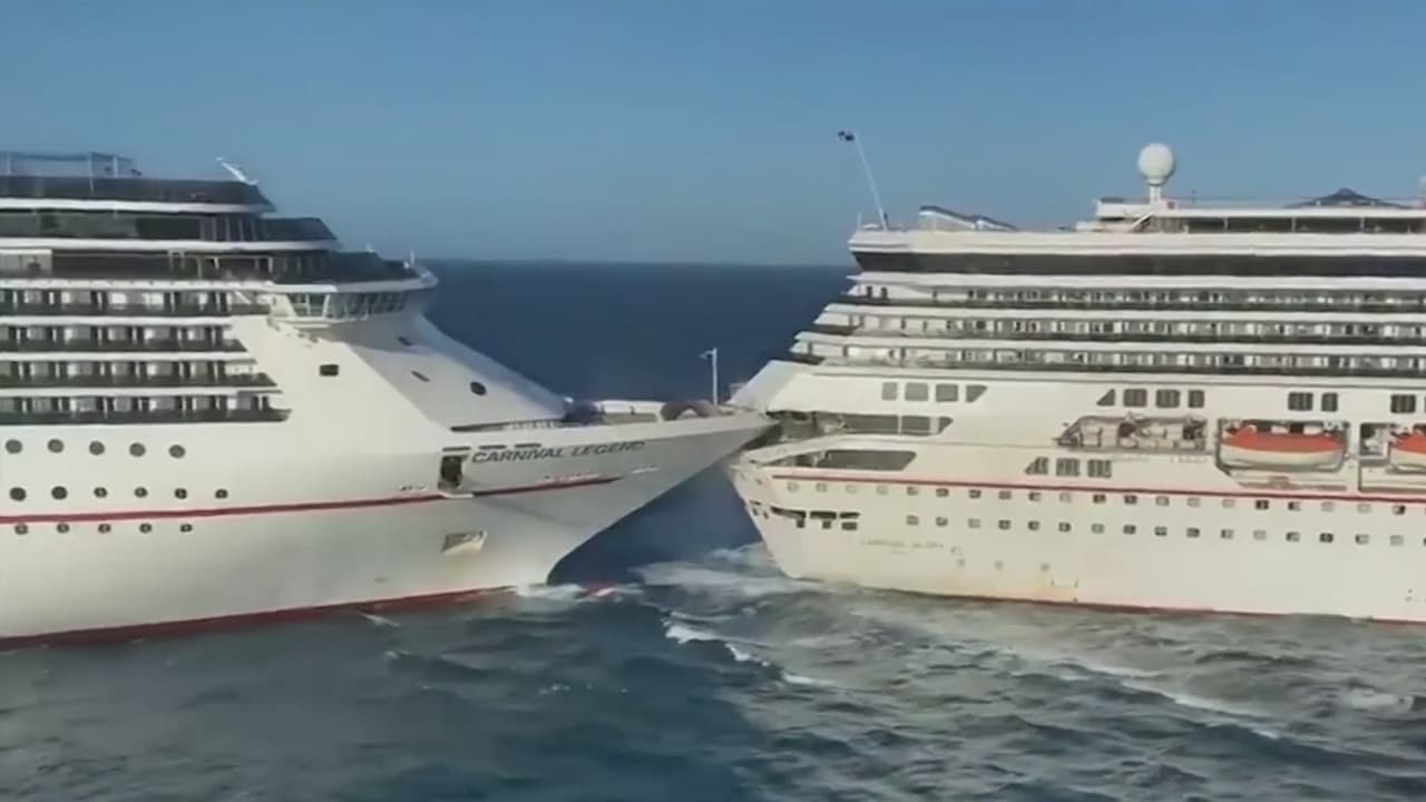 Captado en video: el momento en el que dos cruceros chocan en Cozumel