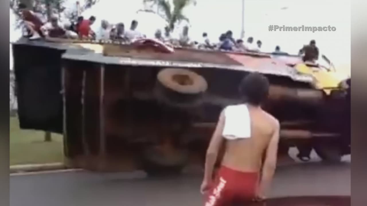 Carro alegórico se vuelca en medio de un desfile en Brasil