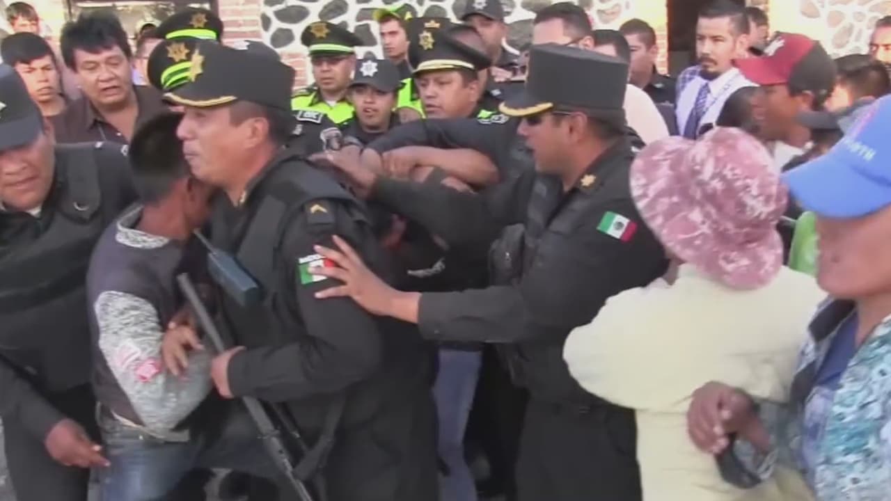 El sujeto tuvo que resguardarse en el interior de una patrulla de policía y los agentes de policía tuvieron que defenderlo de la multitud.