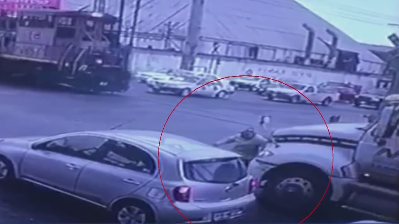 El video muestra cómo el conductor sigue su camino, pero una patrulla logró alcanzarlo y fue arrestado.