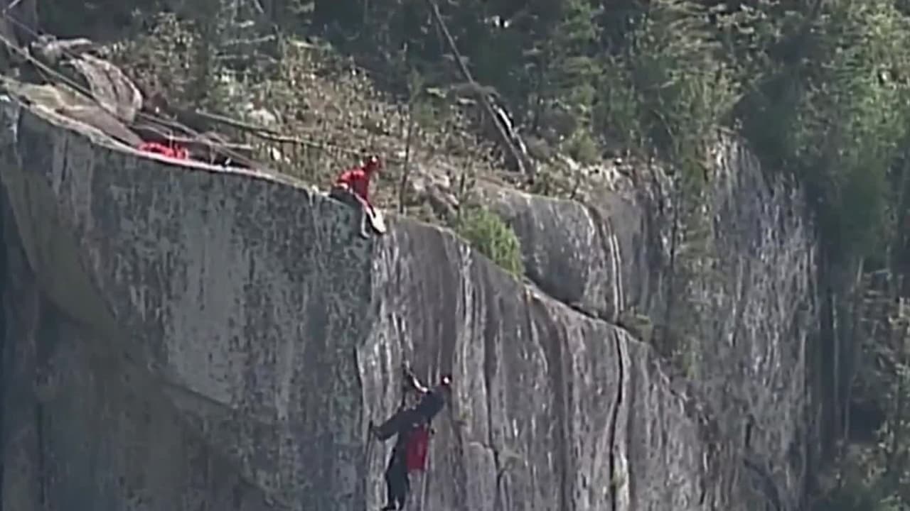 Colgando sobre el abismo, así quedó un paracaidista en la ladera de una montaña en Canadá